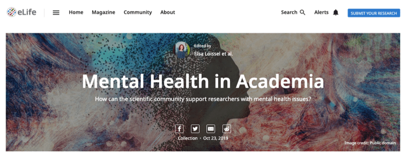 Loissel, E., (2020) Mental Health in Academia: Shedding light on those who provide support. eLife 9:e64739. https://doi.org/10.7554/eLife.64739