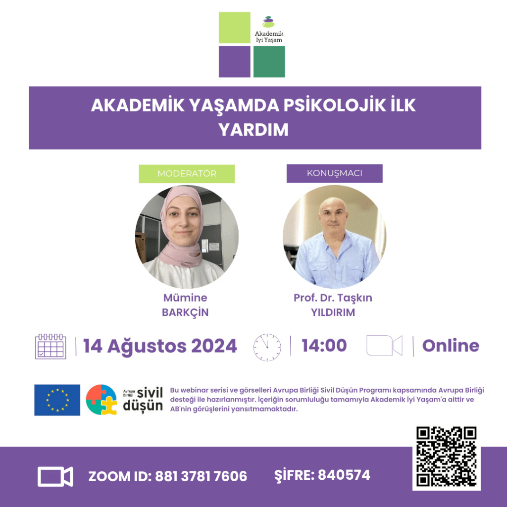 AB Sivil Düşün Programından aldığımız destek ile düzenlediğimiz ” ‘İyi’ üniversite olmak: Üniversite bileşenlerinin akademik yaşamda ruh sağlığı ve iyi oluşları” başlıklı webinar serimizin altıncısında “akademik yaşamda psikolojik ilk yardım” konusuyla Prof. Dr. Taşkın Yıldırım ile bir araya geldik. Konuşmacımızla beraber psikolojik sağlık ve ilgili güncel kavramlar, akademi bileşenleri için psikolojik sağlık, kişilik özellikleri ve benlik saygısının önemi, üniversitelerdeki psikolojik sağlıkta sistemsel ve yönetimsel boyutlar, akademide psikolojik ilk yardım eğitimi & uygulamaları ve akademide yer alan özneler olarak birbirimize sağlayabileceğimiz psikolojik ilk yardım ile bu aşamadaki sınırlarımız üzerine konuştuk. Video kaydını buradan izleyebilirsiniz:
